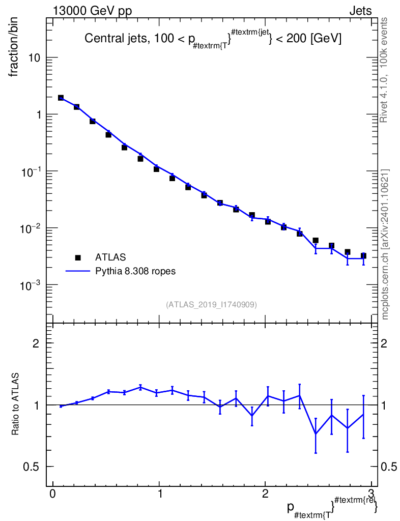 Lines: data, pythia8 8.308 ropes |