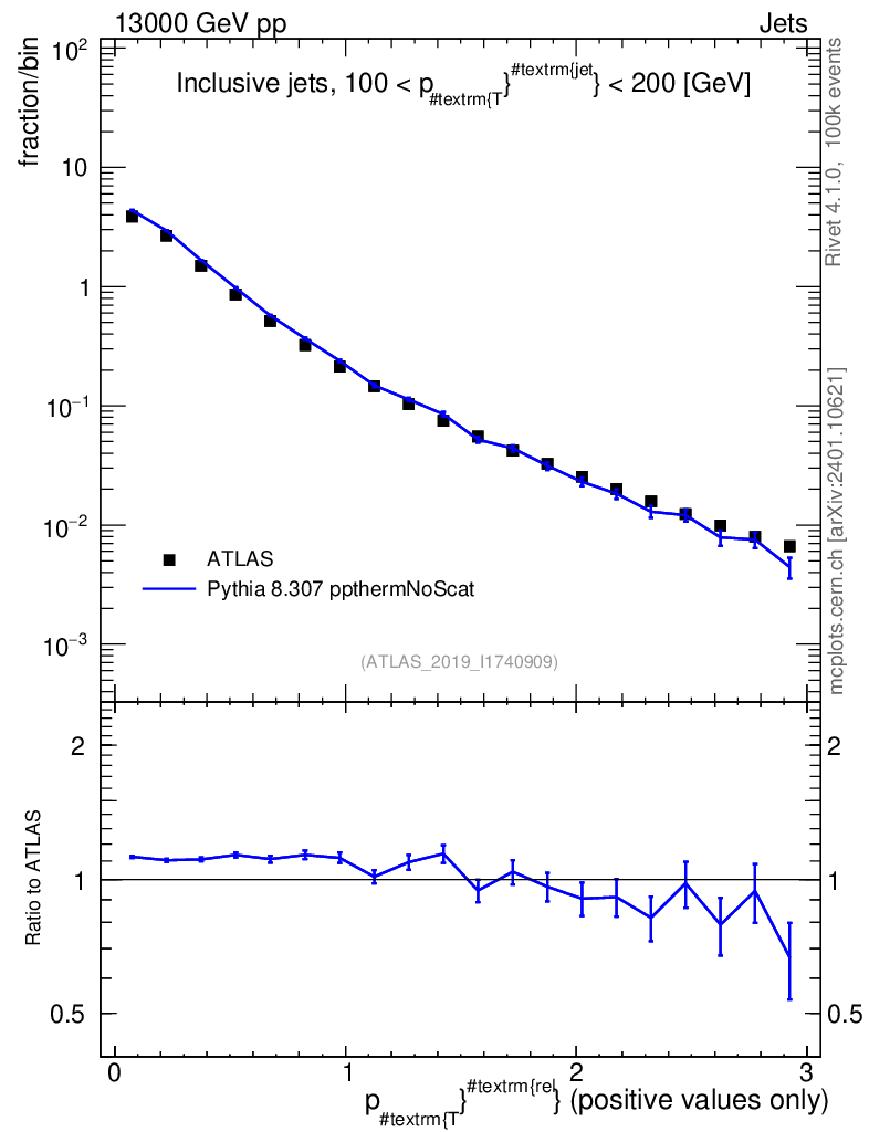 Lines: data, pythia8 8.307 ppthermNoScat |