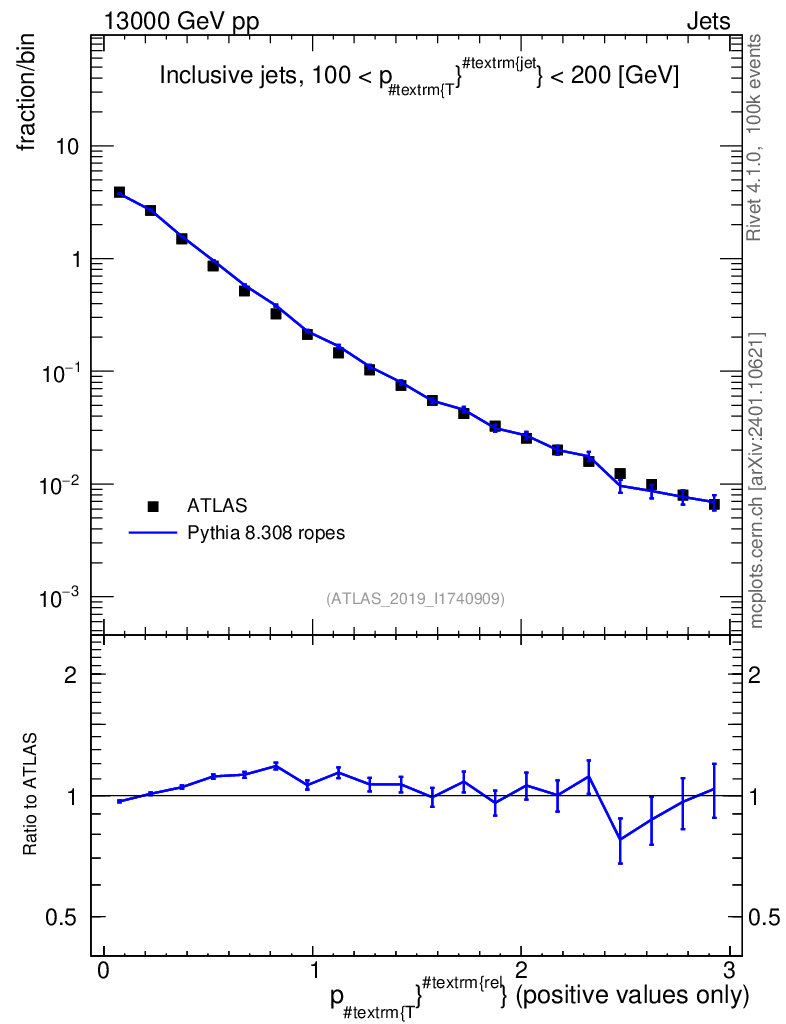 Lines: data, pythia8 8.308 ropes |
