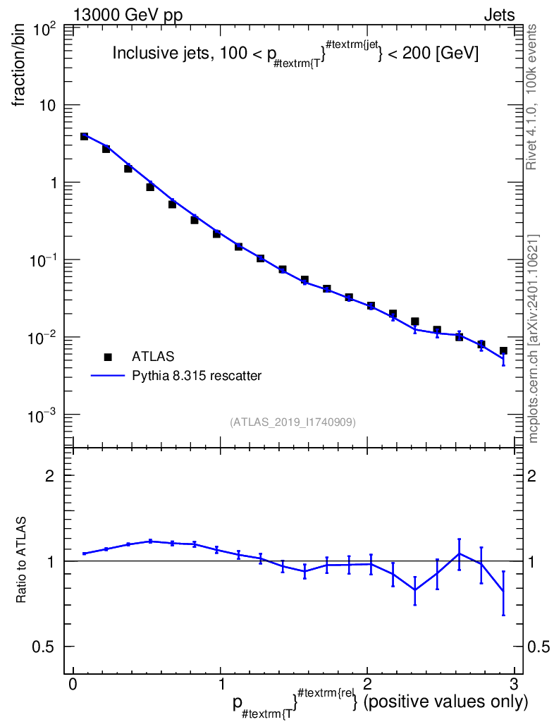 Lines: data, pythia8 8.315 rescatter |