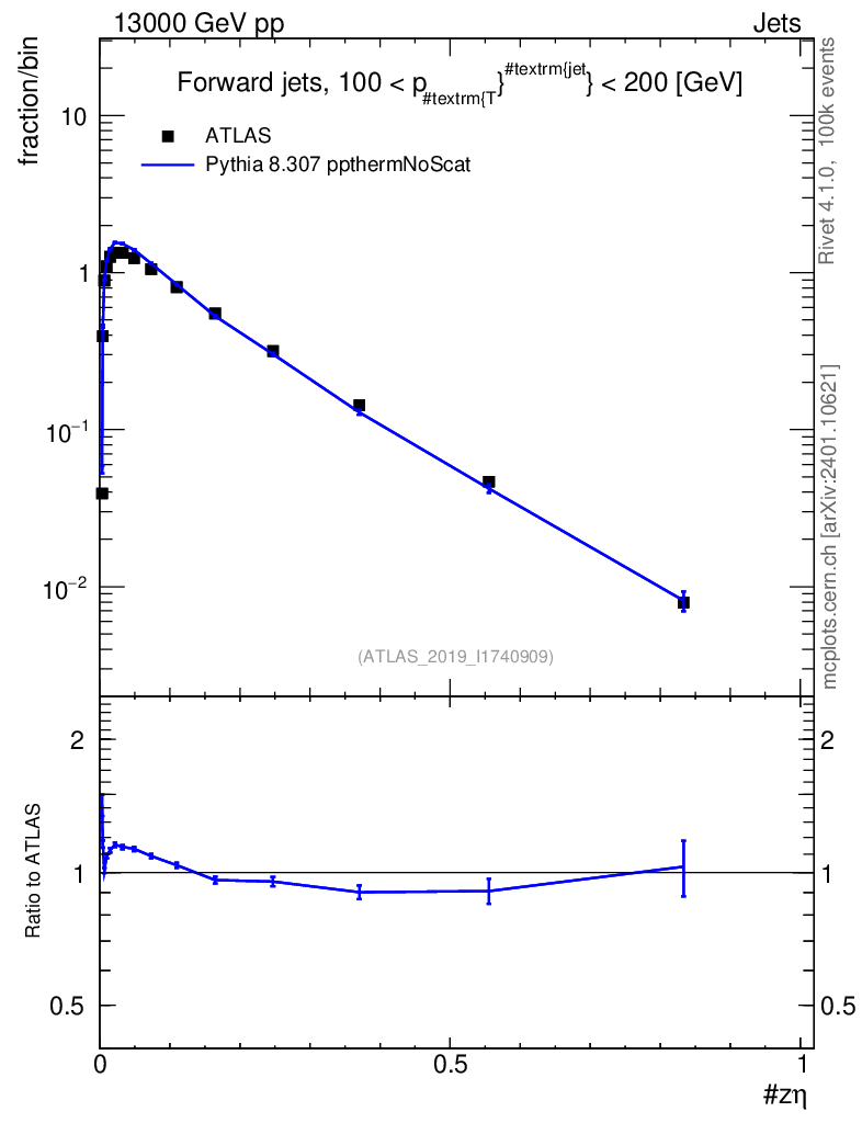 Lines: data, pythia8 8.307 ppthermNoScat |