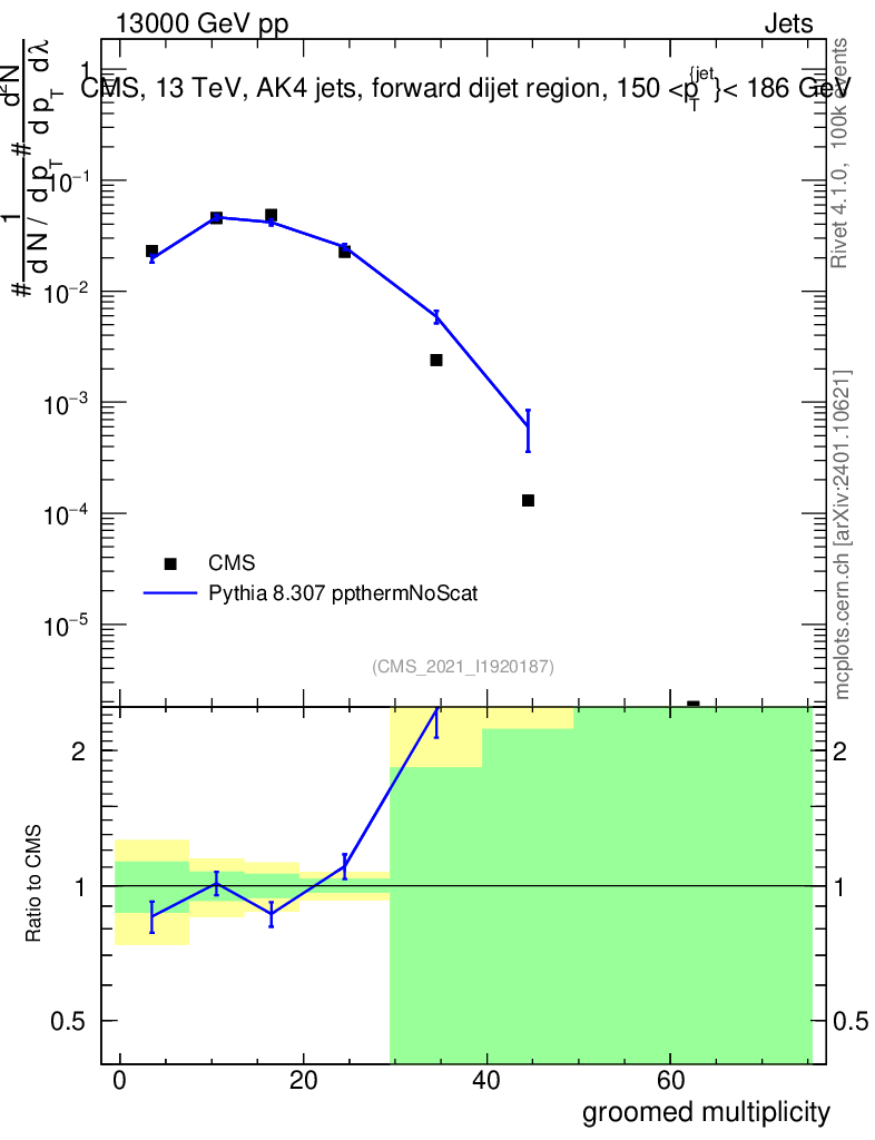 Lines: data, pythia8 8.307 ppthermNoScat |