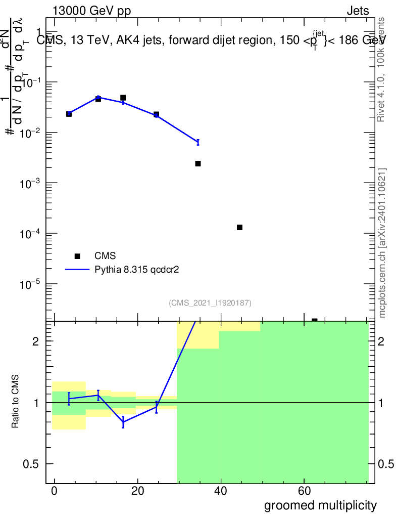 Lines: data, pythia8 8.315 qcdcr2 |