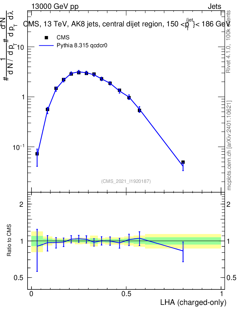 Lines: data, pythia8 8.315 qcdcr0 |