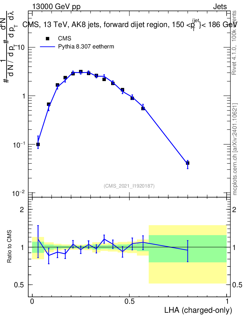 Lines: data, pythia8 8.307 eetherm |