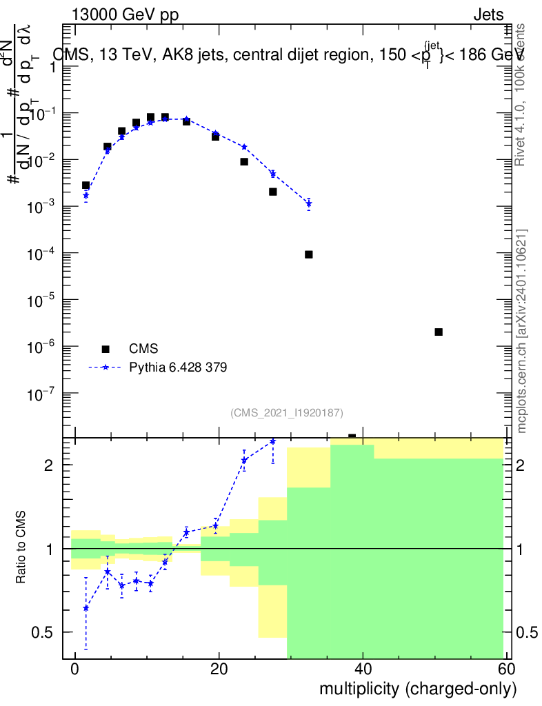 Lines: data, pythia6 6.428 379 |