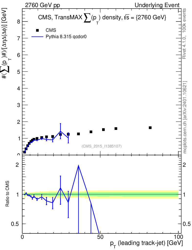 Lines: data, pythia8 8.315 qcdcr0 |