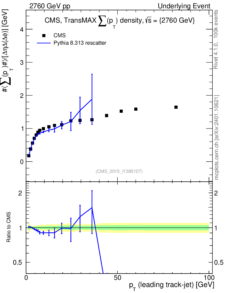 Lines: data, pythia8 8.313 rescatter |