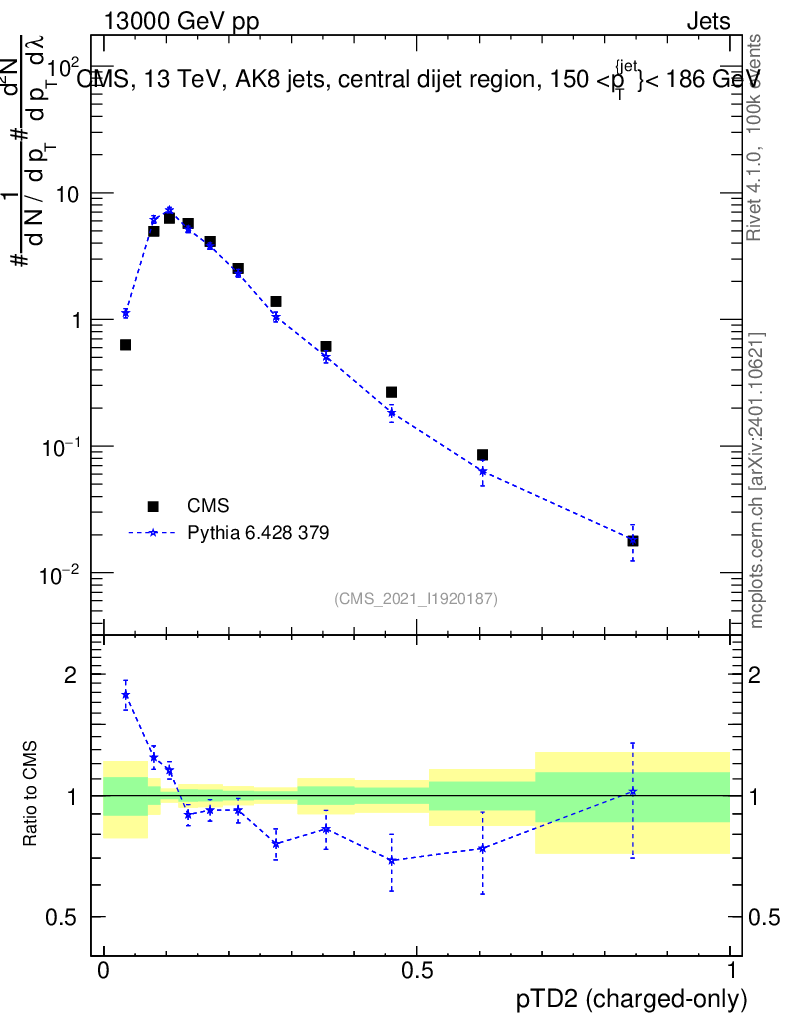 Lines: data, pythia6 6.428 379 |