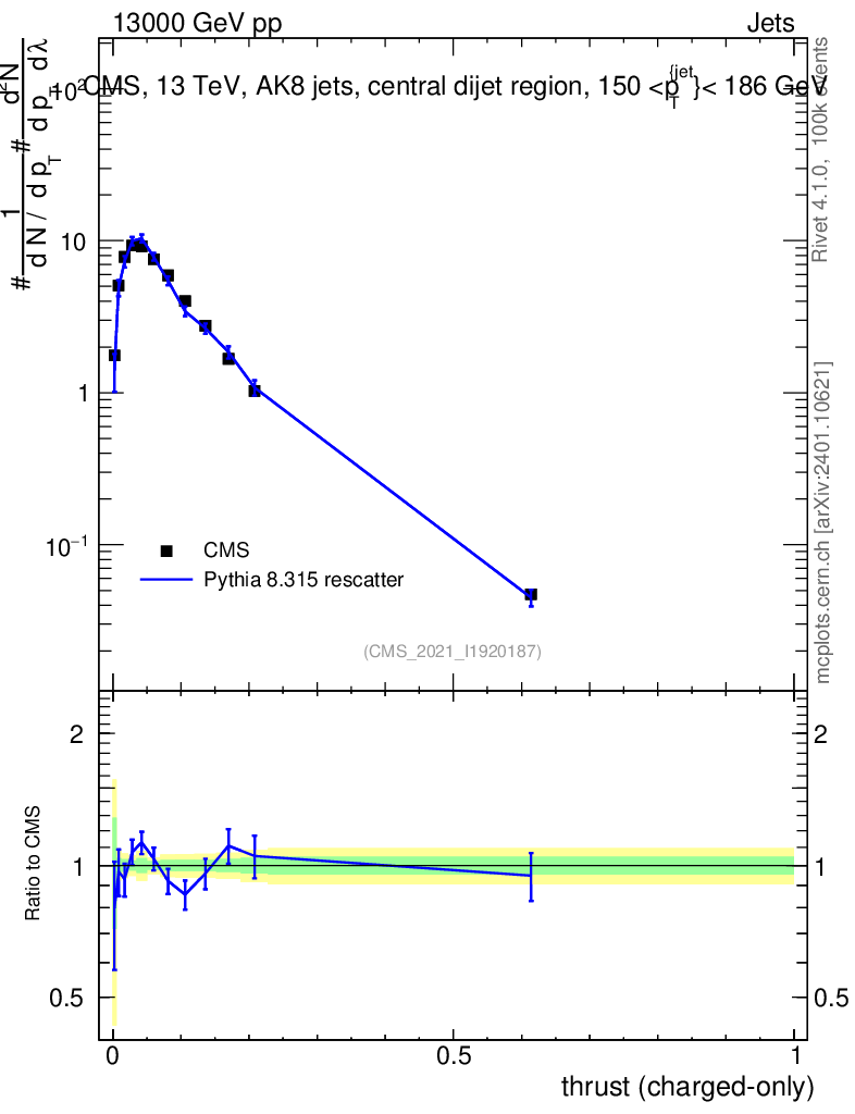 Lines: data, pythia8 8.315 rescatter |