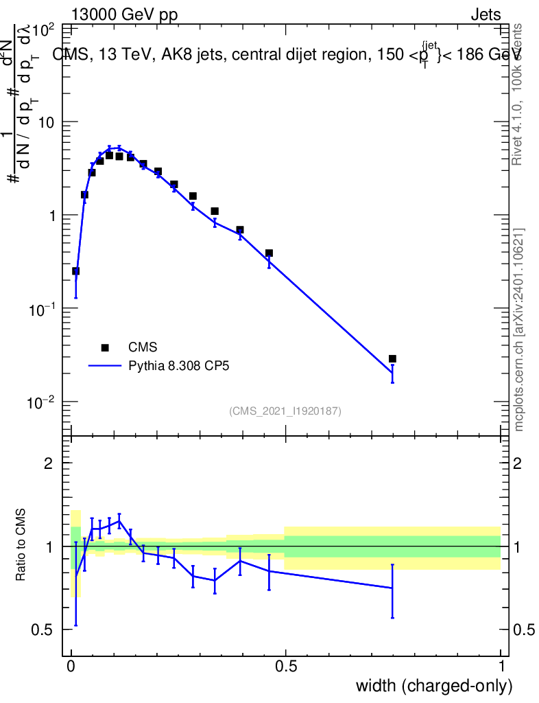 Lines: data, pythia8 8.308 CP5 |