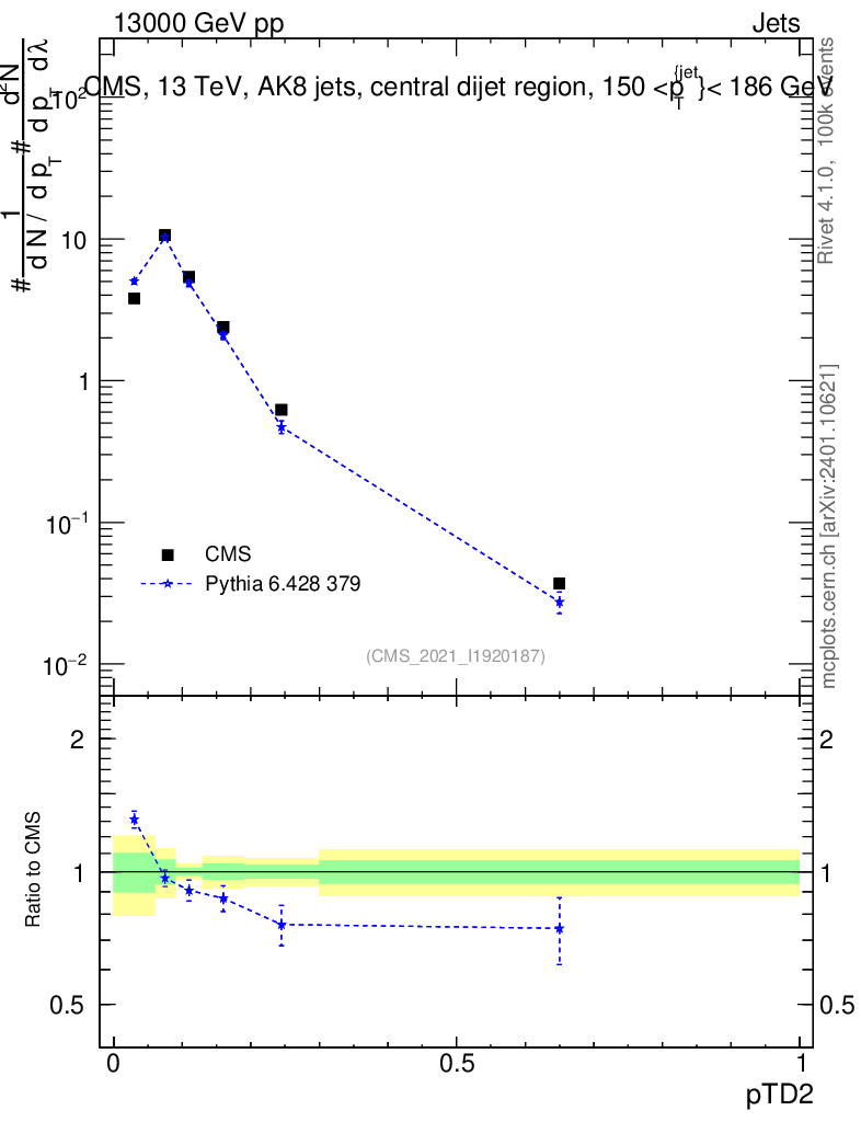 Lines: data, pythia6 6.428 379 |