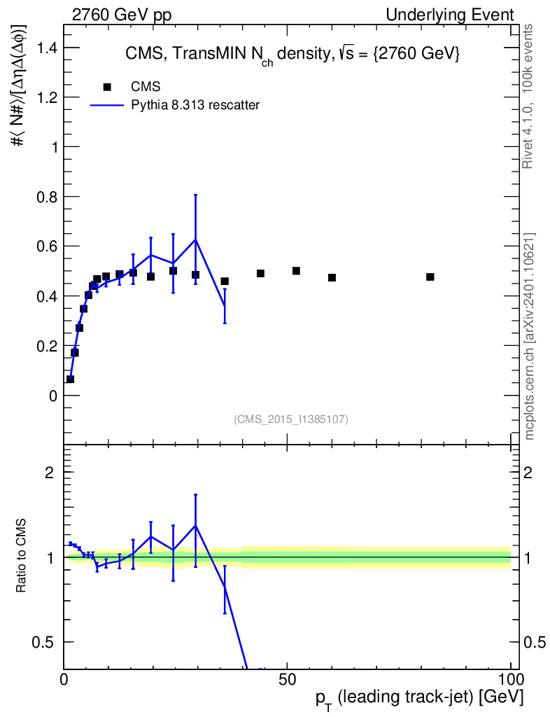 Lines: data, pythia8 8.313 rescatter |