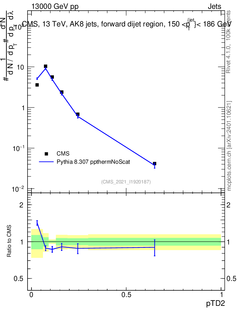 Lines: data, pythia8 8.307 ppthermNoScat |