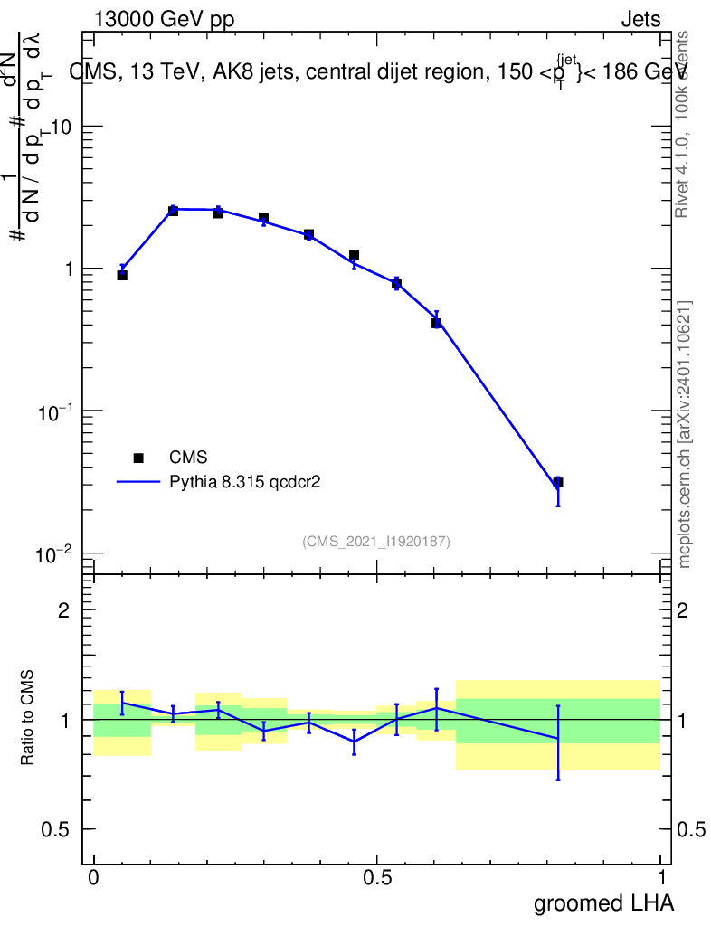 Lines: data, pythia8 8.315 qcdcr2 |