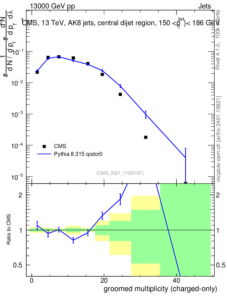 Lines: data, pythia8 8.315 qcdcr0 |