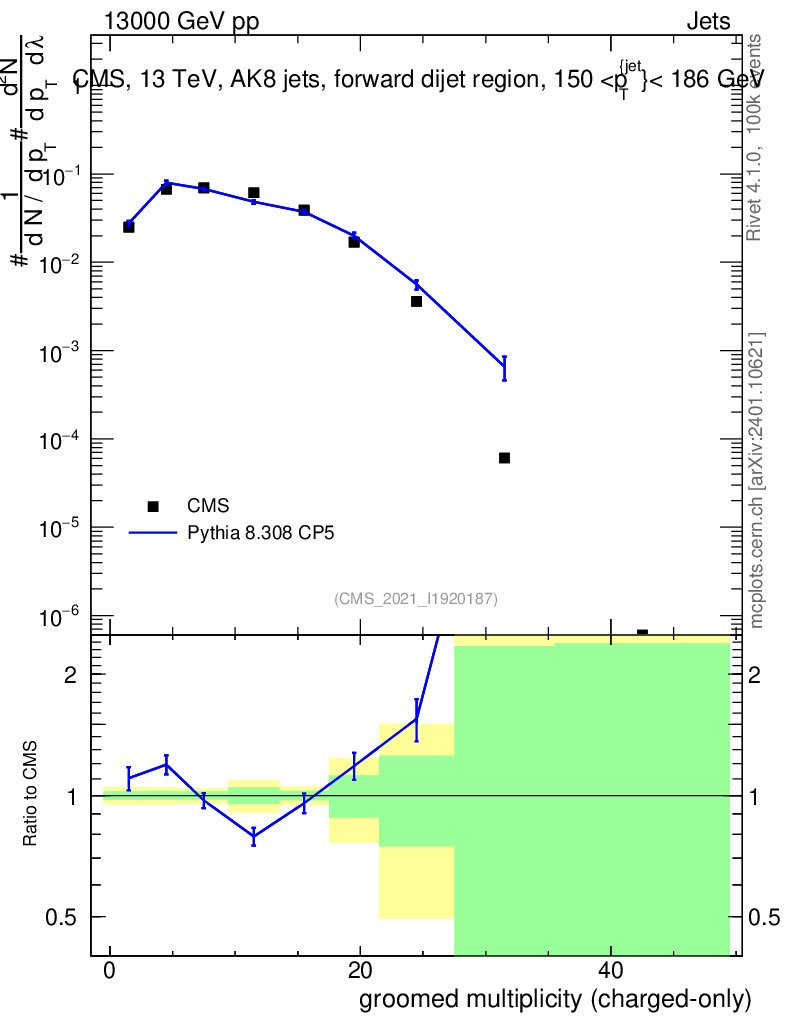 Lines: data, pythia8 8.308 CP5 |