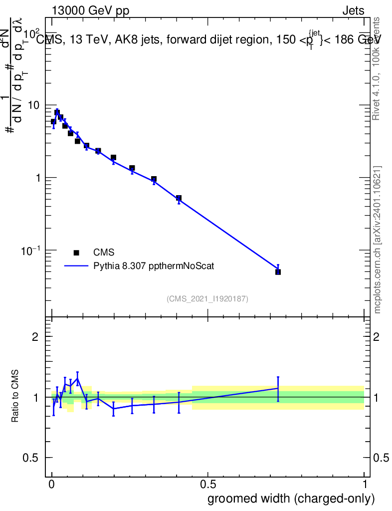 Lines: data, pythia8 8.307 ppthermNoScat |