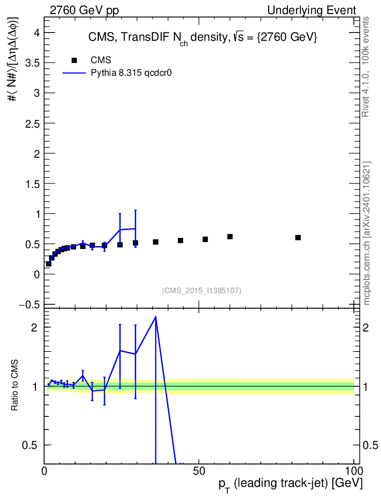 Lines: data, pythia8 8.315 qcdcr0 |