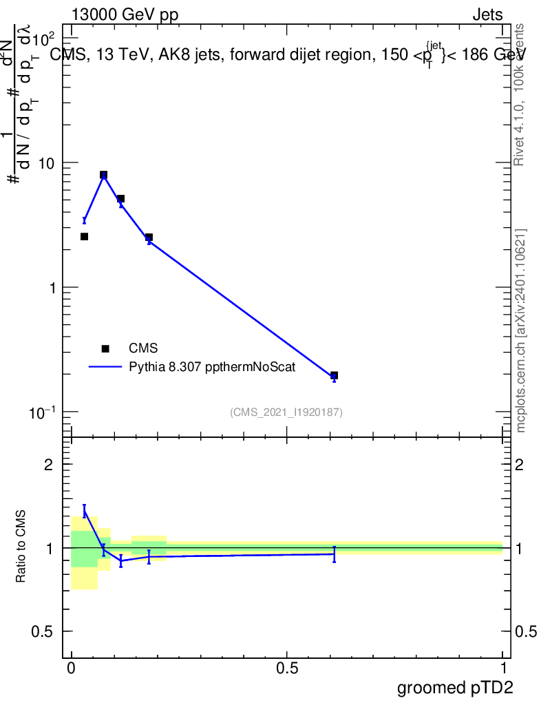Lines: data, pythia8 8.307 ppthermNoScat |
