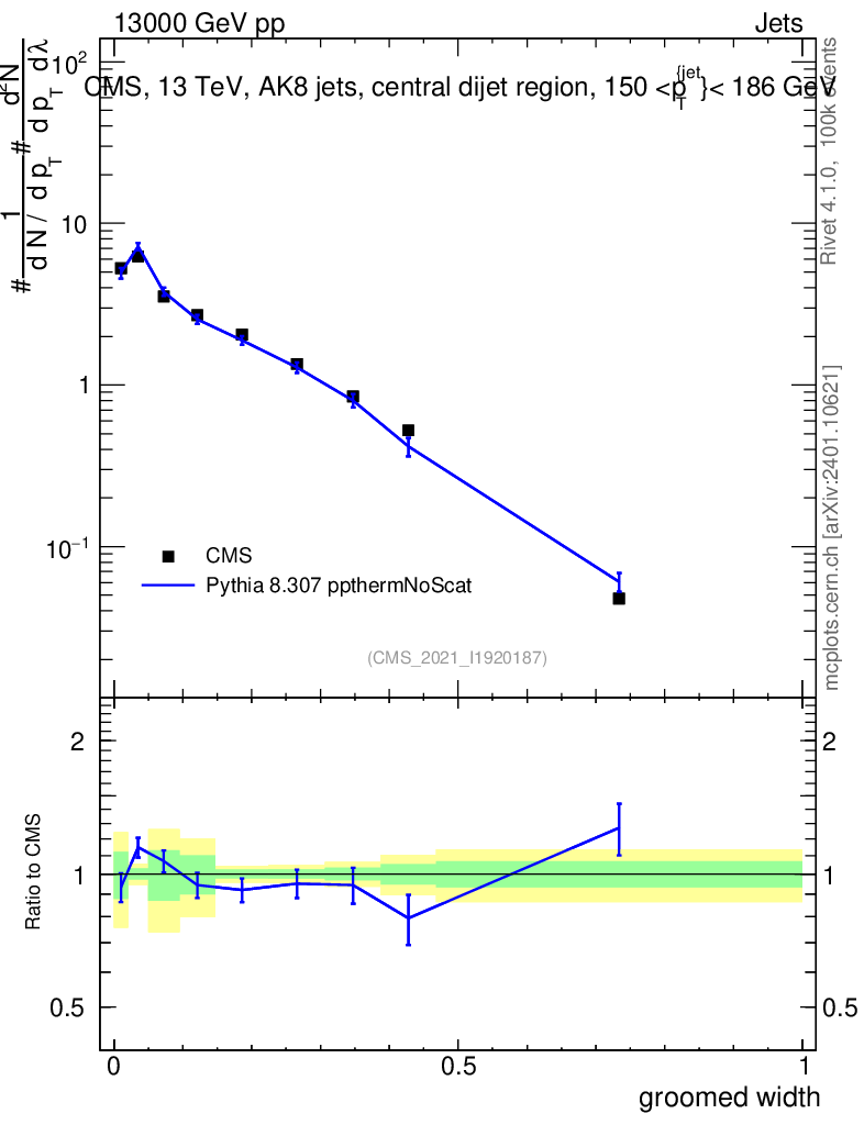 Lines: data, pythia8 8.307 ppthermNoScat |