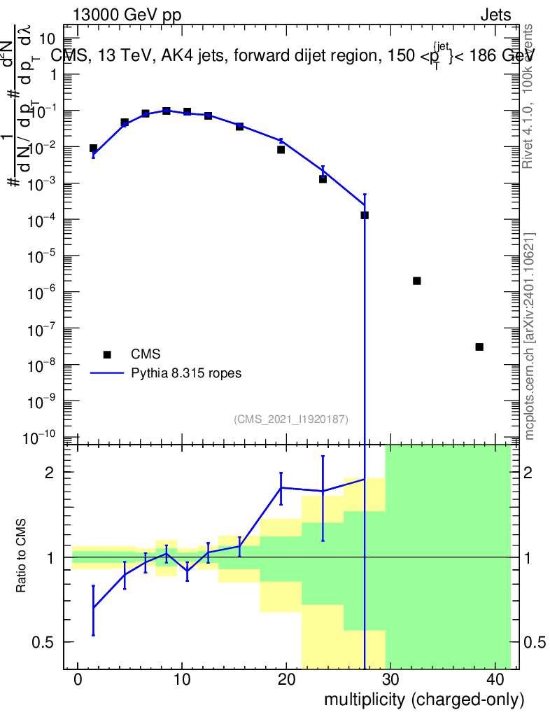 Lines: data, pythia8 8.315 ropes |