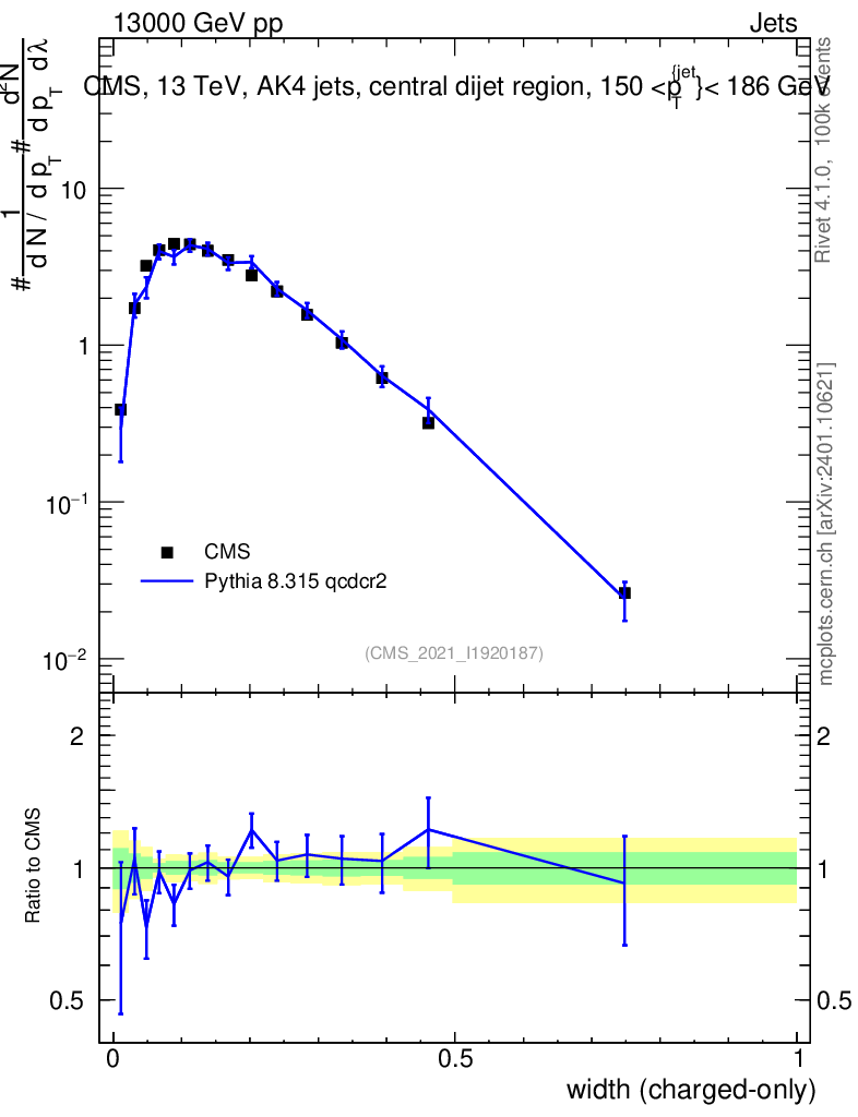 Lines: data, pythia8 8.315 qcdcr2 |