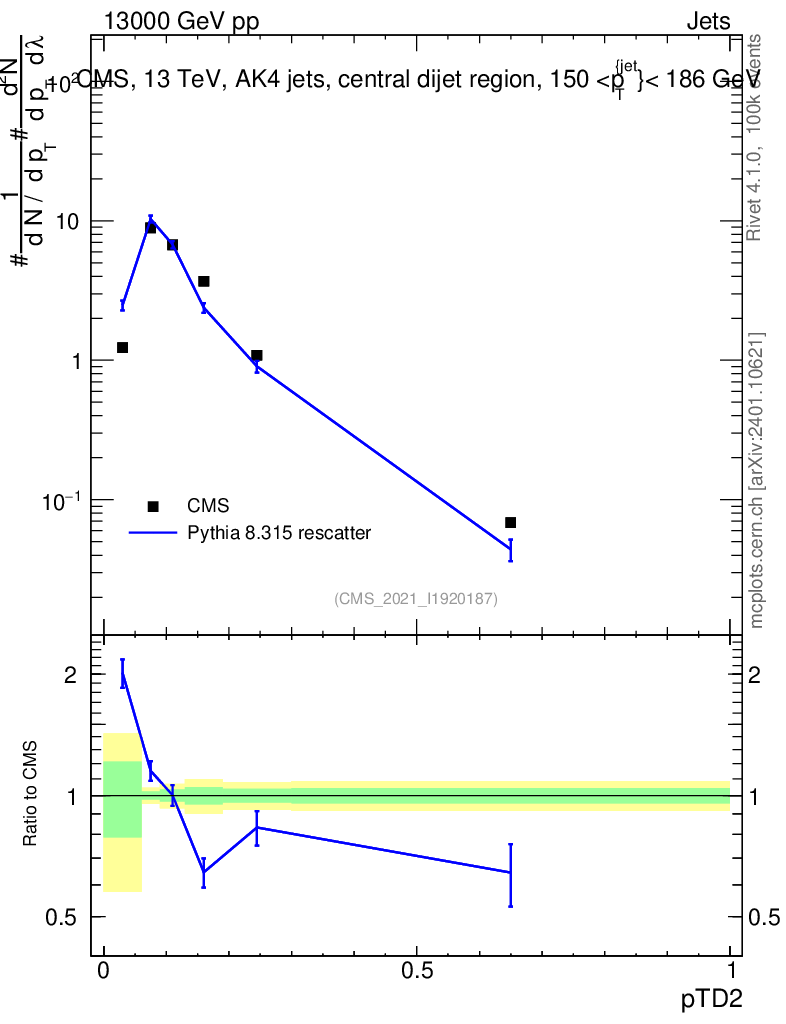 Lines: data, pythia8 8.315 rescatter |