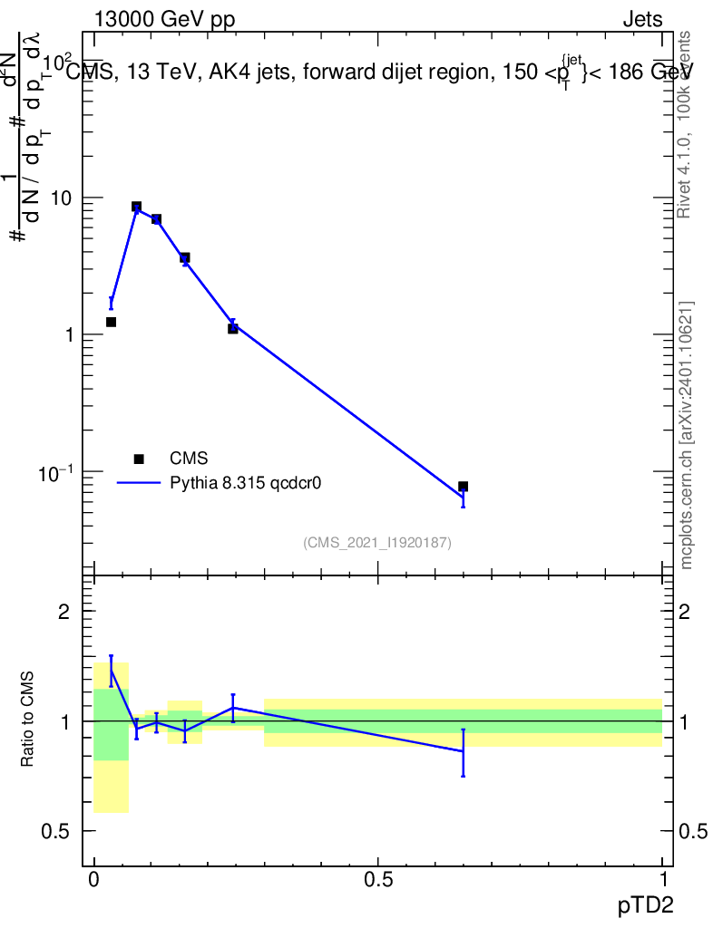 Lines: data, pythia8 8.315 qcdcr0 |