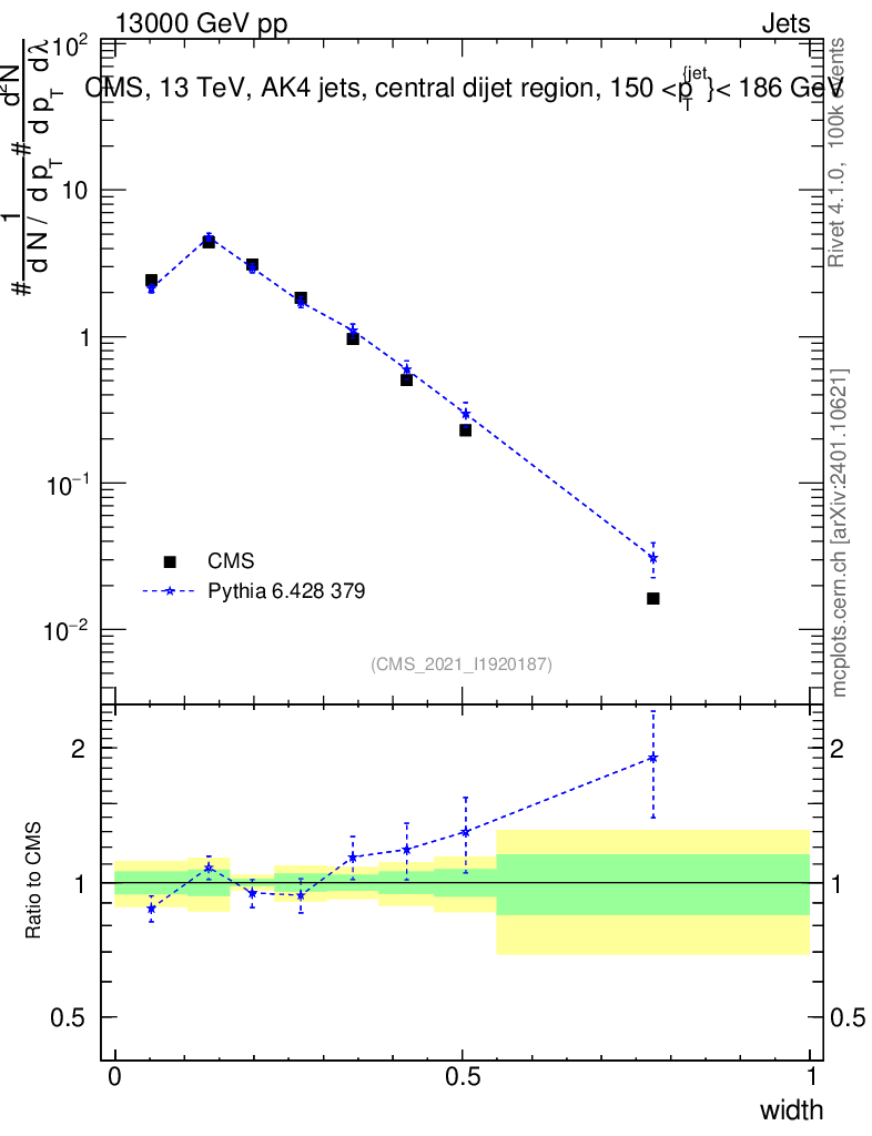 Lines: data, pythia6 6.428 379 |