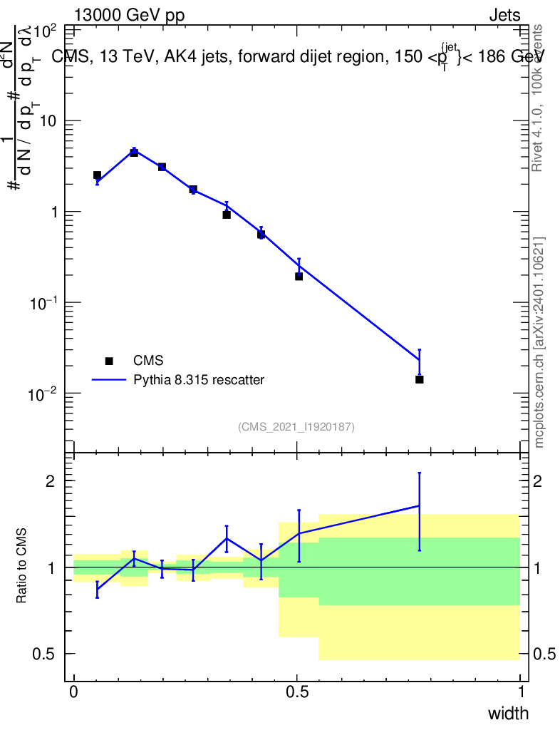 Lines: data, pythia8 8.315 rescatter |