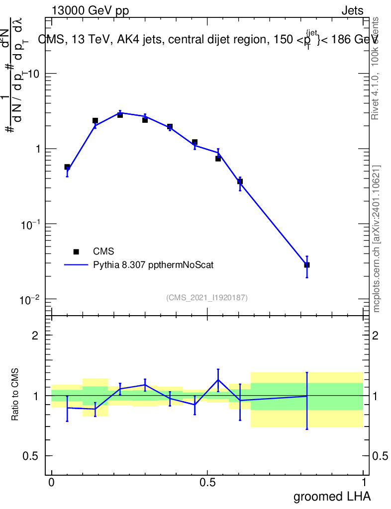 Lines: data, pythia8 8.307 ppthermNoScat |