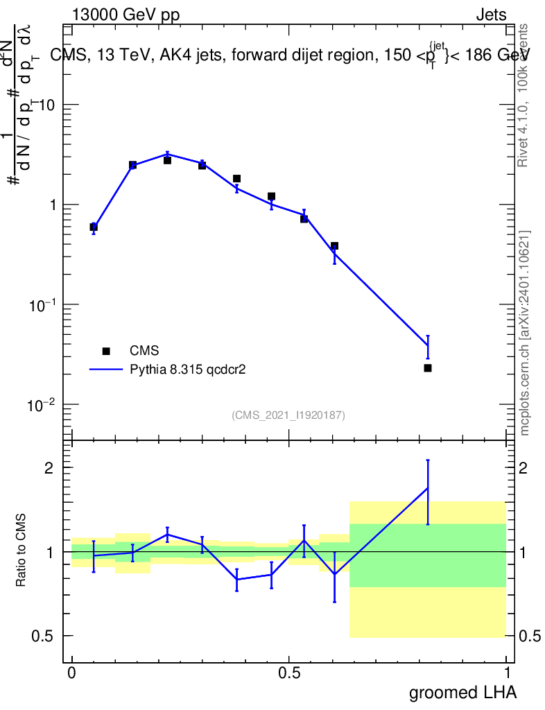 Lines: data, pythia8 8.315 qcdcr2 |