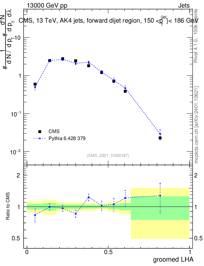 Lines: data, pythia6 6.428 379 |