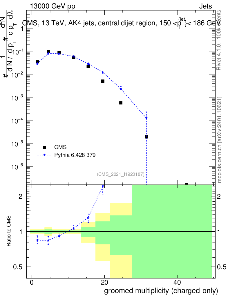 Lines: data, pythia6 6.428 379 |