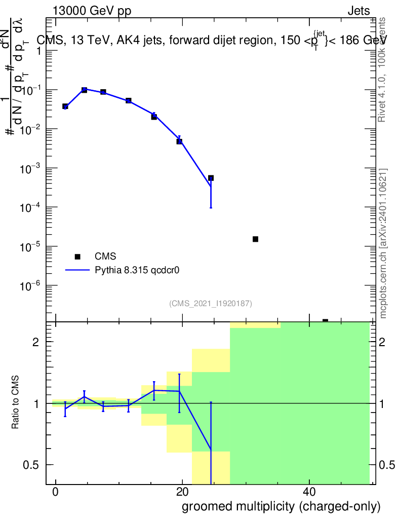 Lines: data, pythia8 8.315 qcdcr0 |