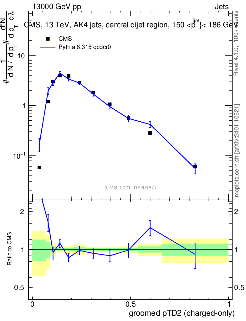 Lines: data, pythia8 8.315 qcdcr0 |