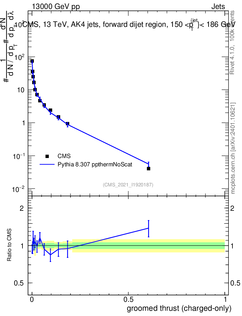 Lines: data, pythia8 8.307 ppthermNoScat |
