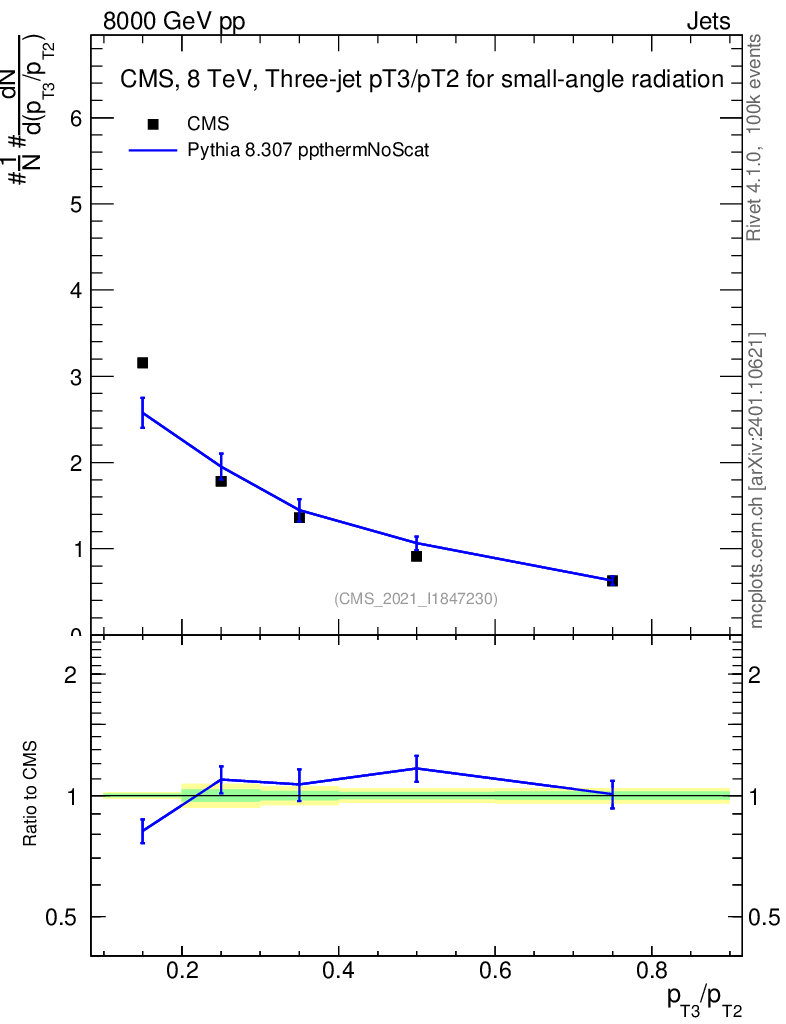 Lines: data, pythia8 8.307 ppthermNoScat |