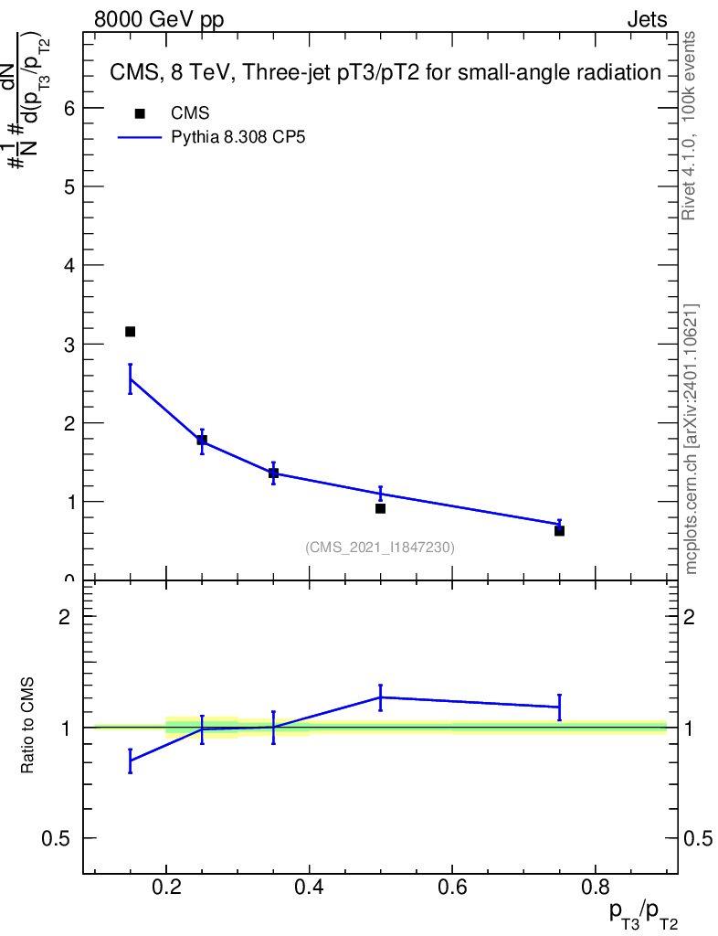 Lines: data, pythia8 8.308 CP5 |