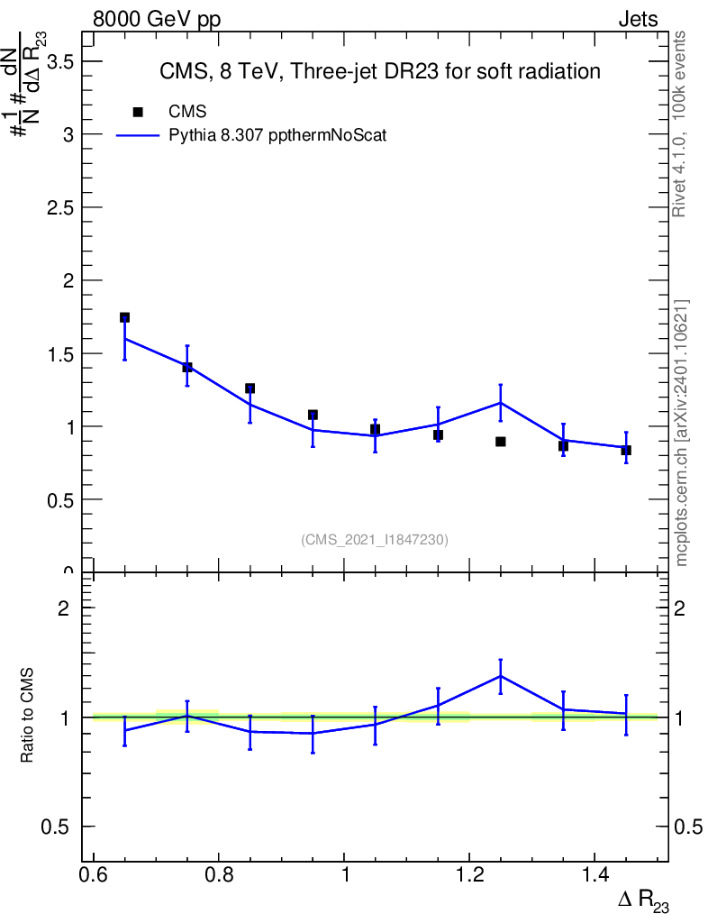 Lines: data, pythia8 8.307 ppthermNoScat |