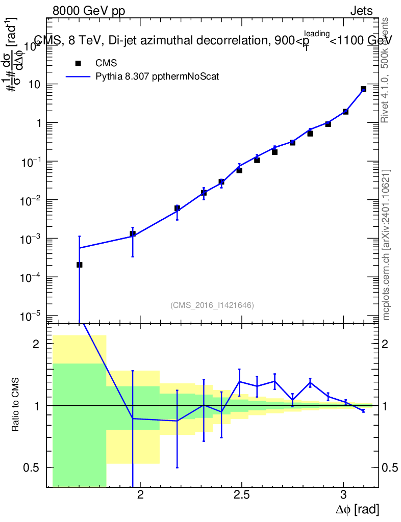 Lines: data, pythia8 8.307 ppthermNoScat |