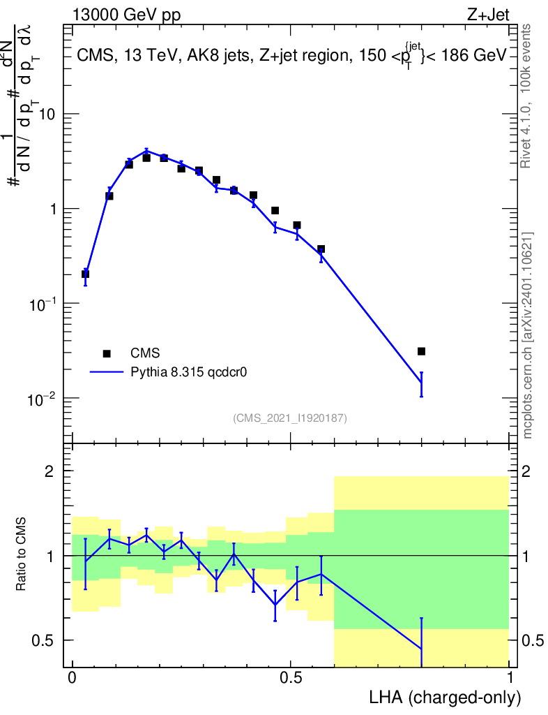 Lines: data, pythia8 8.315 qcdcr0 |