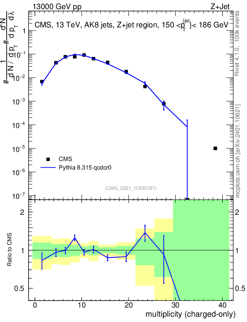 Lines: data, pythia8 8.315 qcdcr0 |