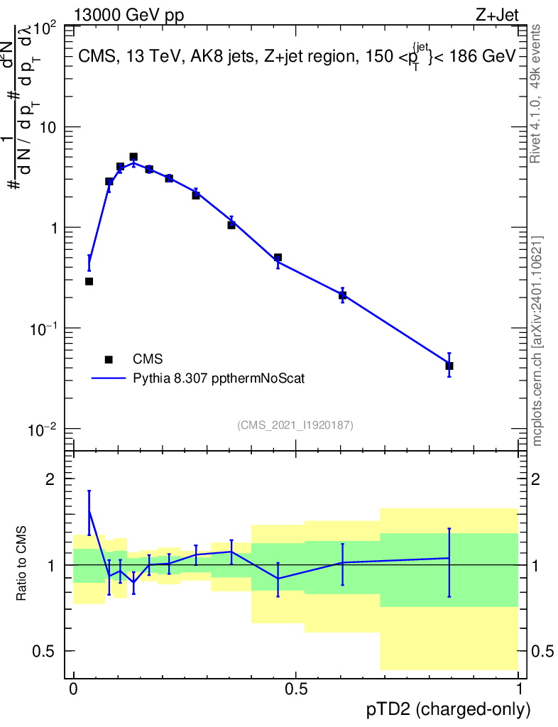 Lines: data, pythia8 8.307 ppthermNoScat |
