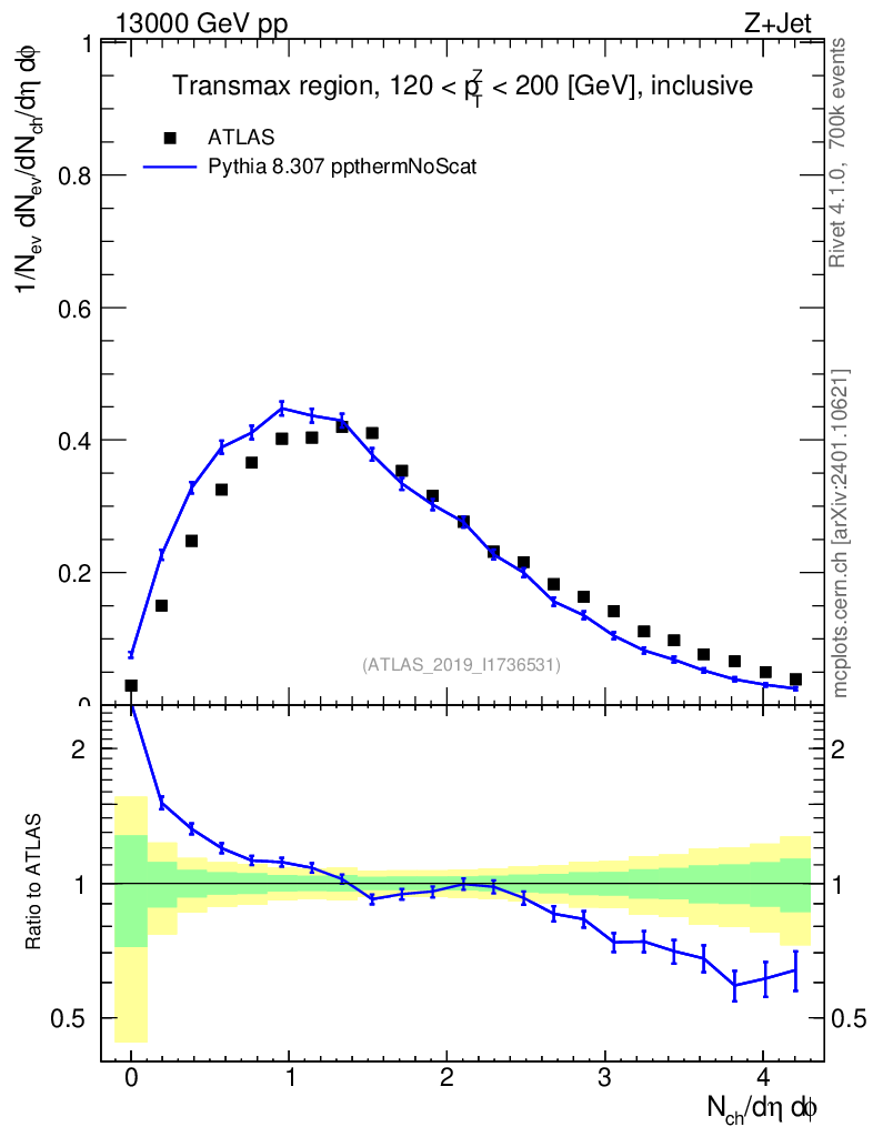 Lines: data, pythia8 8.307 ppthermNoScat |