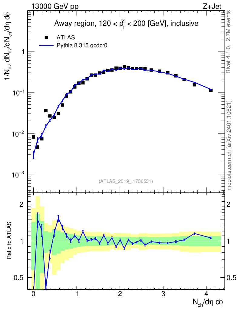 Lines: data, pythia8 8.315 qcdcr0 |