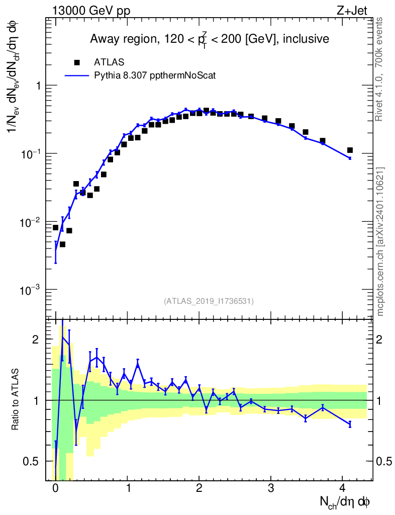 Lines: data, pythia8 8.307 ppthermNoScat |
