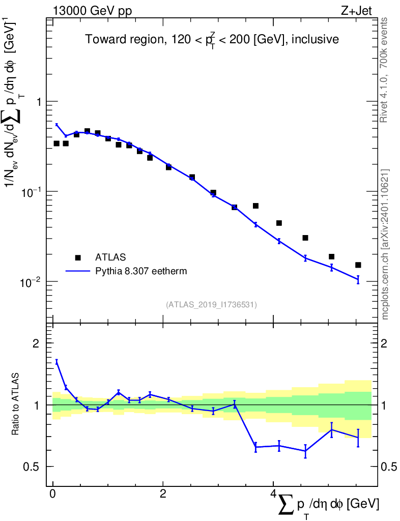 Lines: data, pythia8 8.307 eetherm |