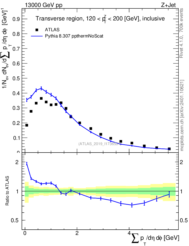 Lines: data, pythia8 8.307 ppthermNoScat |